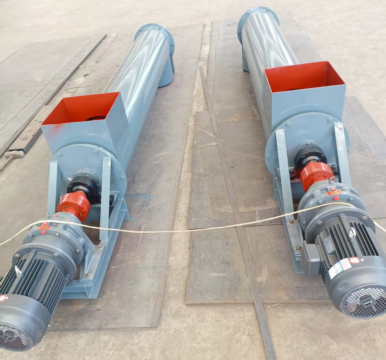 螺旋輸送機(jī)廠家供應(yīng)高品質(zhì)的螺旋輸送機(jī)。型號(hào)齊全。下面詳細(xì)介紹一下:螺旋輸送機(jī)是一種利用電機(jī)帶動(dòng)螺旋回轉(zhuǎn),推移物料以實(shí)現(xiàn)輸送目的的機(jī)械。它能水平、傾斜或垂直輸送,具有結(jié)構(gòu)簡單、橫截面積小、密封性好、操作方便、維修容易、便于封閉運(yùn)輸?shù)葍?yōu)點(diǎn)。螺旋輸送機(jī)在輸送形式上分為有軸螺旋輸送機(jī)和無軸螺旋輸送機(jī)兩種,在外型上分為U型螺旋輸送機(jī)和管式螺旋輸送機(jī)。有軸螺旋輸送機(jī)適用于無粘性的干粉物料和小顆粒物料.(例如:水泥、粉煤灰、石灰、糧等)而無軸螺旋輸送機(jī)適合輸送機(jī)由粘性的和易纏繞的物料。(例如:污泥、生物質(zhì)、垃圾等)螺旋輸送機(jī)的工作原理是旋轉(zhuǎn)的螺旋葉片將物料推移而進(jìn)行螺旋輸送機(jī)輸送,使物料不與螺旋輸送機(jī)葉片一起旋轉(zhuǎn)的力是物料自身重量和螺旋輸送機(jī)機(jī)殼對(duì)物料的摩擦阻力。螺旋輸送機(jī)旋轉(zhuǎn)軸上焊的螺旋葉片,葉片的面型根據(jù)輸送物料的不同有實(shí)體面型、帶式面型、葉片面型等型式。螺旋輸送機(jī)的螺旋軸在物料運(yùn)動(dòng)方向的終端有止推軸承以隨物料給螺旋的軸向反力,在機(jī)長較長時(shí),應(yīng)加中間吊掛軸承。