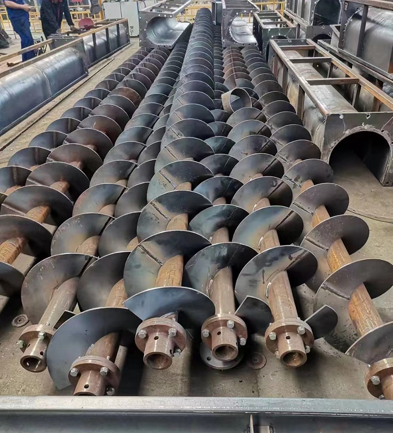 螺旋輸送機的螺旋葉片有實體螺旋面、帶式螺旋面和葉片螺旋面三種形式。